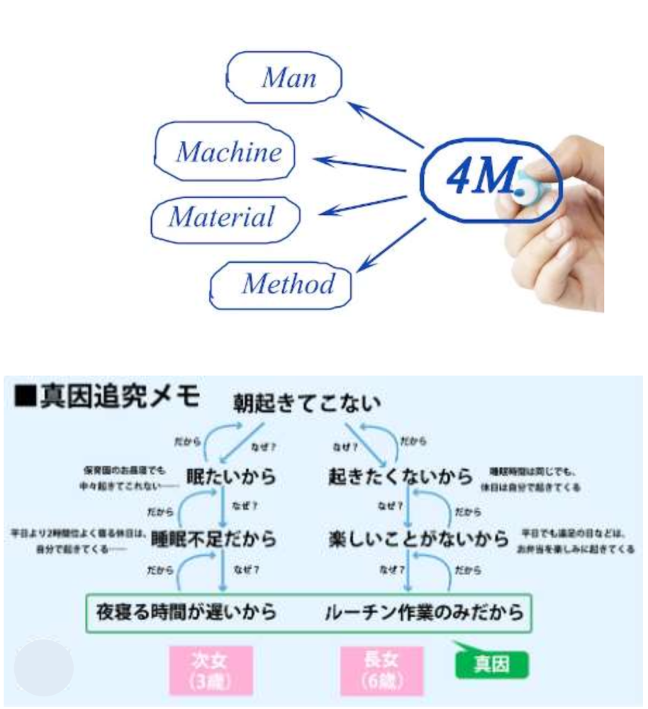 ●その考える原因・要因を理屈だって整理する (特性要因図、 5M、真因、なぜなぜ分析)